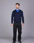 Standard fit, Set in sleeve, Knitted saddle shoulder, Knitted rib neck, cuff and welt, V neck style