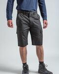 Traditional waistband, Five belt loops, Front zip fly with button, Two side front pockets, Two side cargo pockets with flaps, Left side back patch pocket