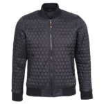 Slim fit, lightweight jacket, Diamond shaped quilting, Bomber style jacket, Elasticated ribbed knit collar, cuffs and hem, Full zip through bungee cord style zip, Interchangeable zip colours in Orange and Black, Two side slit pockets and internal zip pocket, Shower resistant, Rebrandable, Wash at 30 degrees