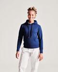 Slim fit, Certified organic, Certified recycled, Soft hand feel, Waffle knit hood and kangaroo pockets, Brushed inner fleece, Nickle free eyelets and drawcord ends, Twin needle stitching and ribbed cuffs and hems, Size label only, *Grey Marl: 73% organic cotton, 21% recycled polyester, 6% viscose