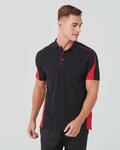 Contrast side panels and piping, Piping and panel on sleeves, Three button placket, ribbed collar, Contrast piped inner placket, Raglan sleeves